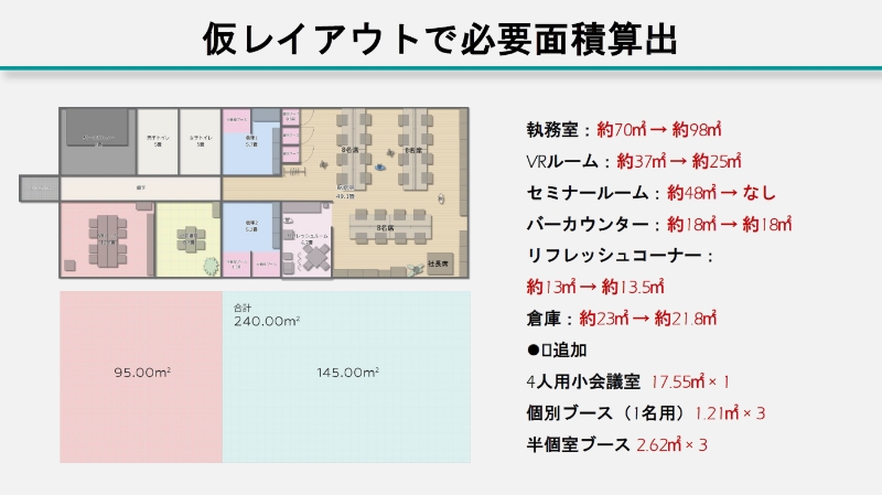 しかし、今回の移転直前の時点における社員数は20名と倍増し、座席不足、スペース不足が慢性的な課題となっていました。